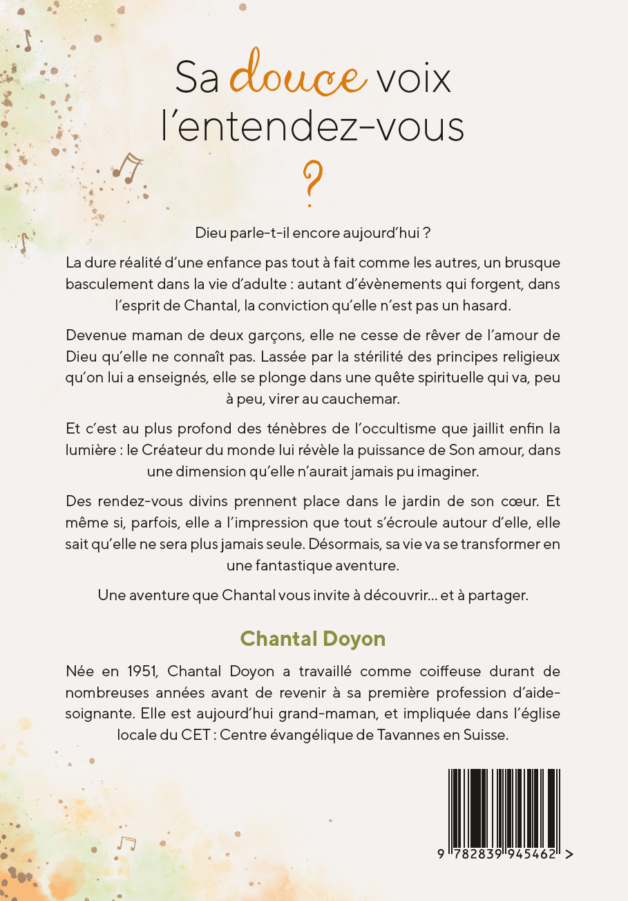 Nous vivons dans un monde qui privilégie la matière à l’esprit, le spectaculaire au subtil. C’est également un monde où le bruit tonitruant de l’entourage et des médias l’emporte souvent sur le murmure de la voix de Dieu. Ainsi, l’expérience de Chantal DOYON avec la douce voix de Dieu témoigne que Dieu parle et qu’il faut de la discipline et du discernement pour L’entendre.